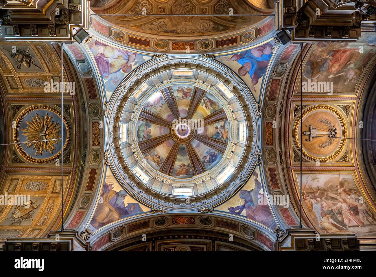 Italy, Rome, ceiling and dome decorated with frescoes in Church of San , Via san francesco d'assisi 1, torino.